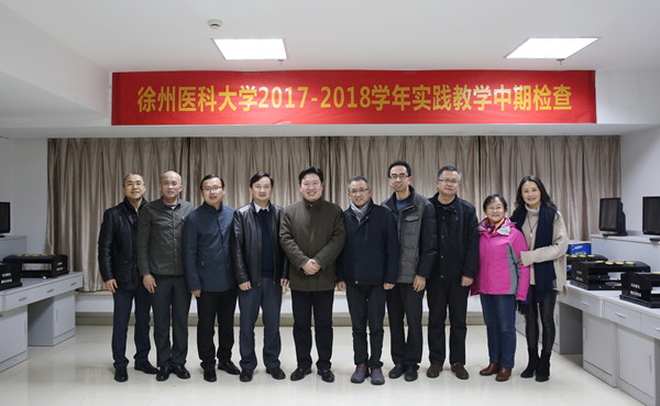 2018年1月5日下午,徐州医科大学巡查组一行6人在副校长徐海波的带领下莅临我院,进行2017~2018学年中期实践教学检查。我院党委书记、院长沈根海,副院长李根华,科教处主任管学妹陪同检查。