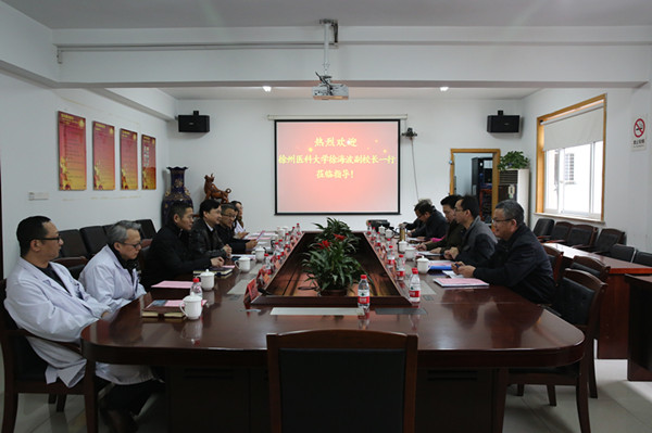 建设情况。徐海波副校长进行了教学相关工作的反馈,并诚挚邀请沈根海院长参加徐州医科大学60周年校庆。检查组随后听取了科教处主任管学妹的教学工作汇报。