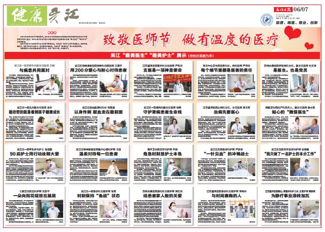 其中,我院5名医护人员获奖。王刚、金华、徐燕获评“*美医生”,马佳丽、张英获评“*美护士”。他们分布在我院的不同岗位上,他们是广大医护人员中爱岗敬业、履职奉献的代表,不仅有专业技术,也深得患者的信赖,更成就了“健康吴江”的一片*暖风景。