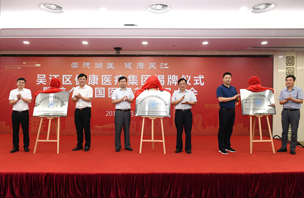 在8月17日举行的吴江区健康医疗集团揭牌仪式暨**中国医师节庆祝大会上,区委书记沈国芳,区委副书记、区长李铭,苏州市卫计委副主任盛乐为三大“健康医疗集团”揭牌。
