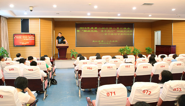 为深入学习贯彻习近平新时代中国特色社会主义思想和党的十九大精神,引导全院青年医务人员进一步解放思想、凝聚共识,我院团委积极响应区团委的号召,联合科教处于8月22日下午举办2018年度出国进修人员汇报交流会暨“解放思想、青年先行”经验交流分享会。