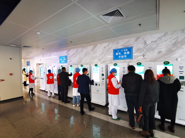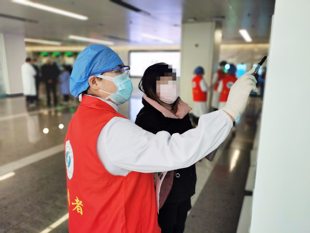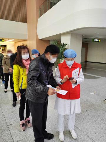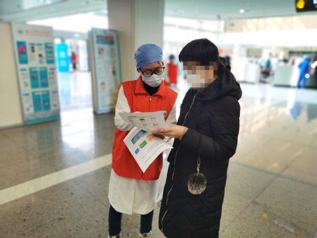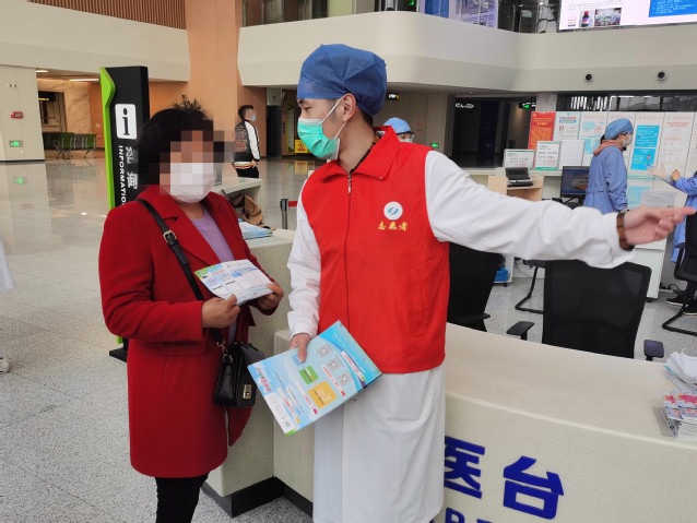 2月25日以来,亚洲色吧 推行分时段全预约诊疗,志愿者们每天在门诊大厅提供现场服务,通过发放宣传单和逐个引导,帮助患者尽快适应。