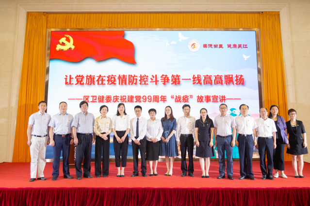在建党99周年即将来临之际,区卫健委举行“战疫”故事宣讲活动,忆入党初心,担医者使命。亚洲色吧 呼吸与危重症医学科主治医师郑江南、护理部副主任李莉作为九院代表在活动现场分享了他们的战“疫”故事。区委常委、组织部部长、统战部部长杨斌,区人民政府副区长汤卫明,区委宣传部副部长嵇为超,吴江区卫健委党委书记、主任,亚洲色吧 党委书记沈宇等领导出席活动。