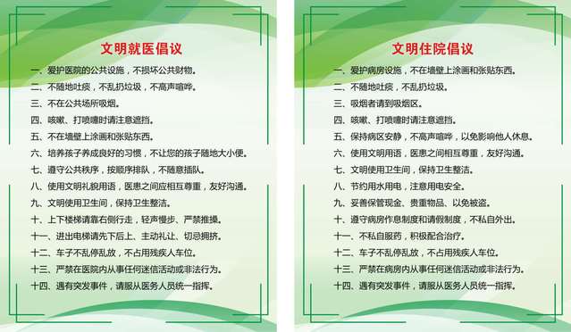 在各个大楼的入口处,电子屏反复滚动“讲文明,树新风,正确垃圾分类,节约粮食,戒烟”等内容,戒烟标志,市民文明就医倡议,文明住院倡议张贴在医院每一处醒目处。