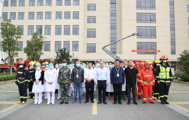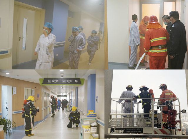 随后,按照演练方案,模拟火势无法控制的情况。医务人员接到指令后,迅速组织对病人进行疏散,按照既定路线和逃生预案疏散转运患者和家属。院内消防通讯组、疏散组、救援组分工合作,微型消防站人员积极控制火势蔓延。消防中队接到报警后,迅速出动3台消防车赶赴现场处置,到达现场后发现火势已蔓延,得知阳台上还有人员被困,消防官兵迅速出动云梯,将被困病人救出。在各方人员的共同努力下,大火被成功扑灭,演练圆满结束。