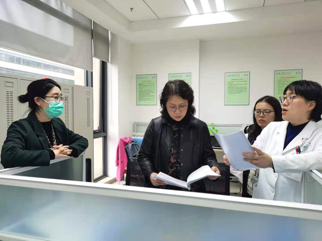营养科主任张琴从营养科日常诊疗工作、营养食堂建设、营养支持在临床中的应用等方面向专家组做了详细汇报。专家组一行分别对营养库房、营养食堂、肠内营养配制室进行了现场检查,并查阅了相关台账资料。