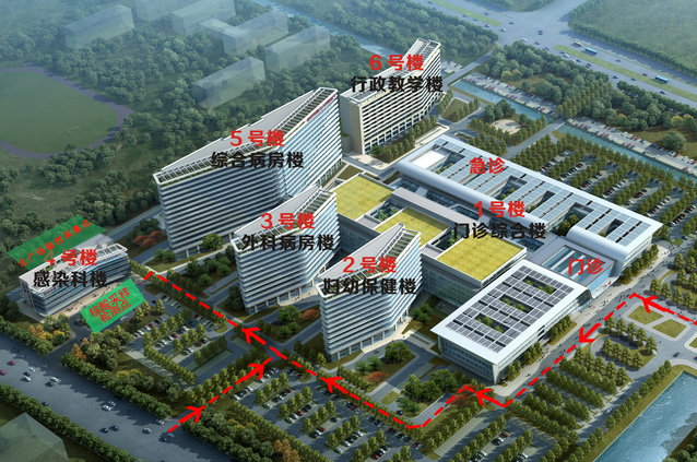 位于医院4号楼感染科楼大门前,地图标注绿底红字图样。
