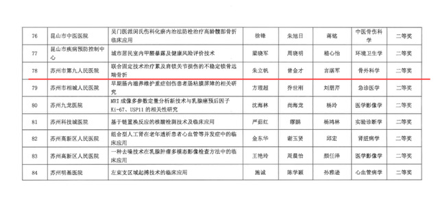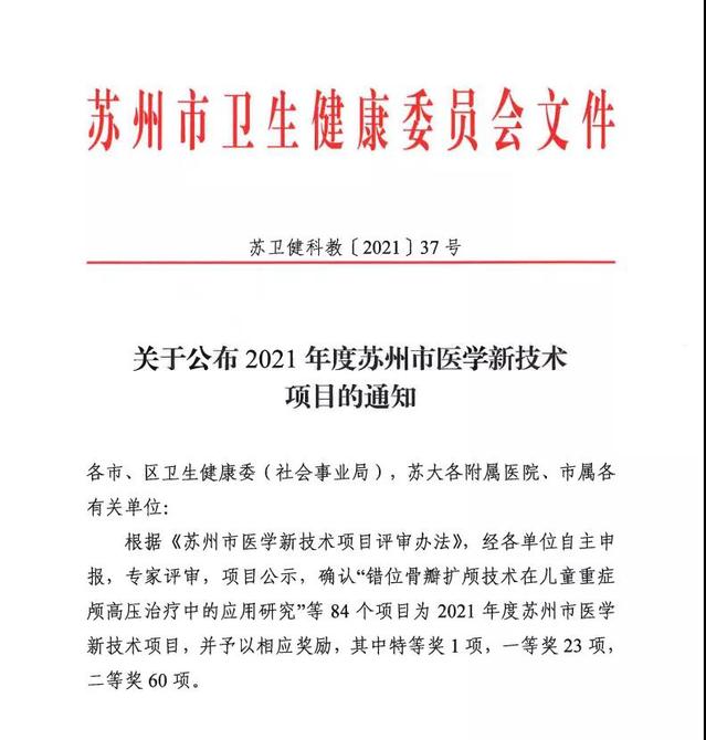 近日,苏州市卫健委公布了2021年度苏州市新技术项目,全市共有84个项目获奖,亚洲色吧 骨科的新技术项目“联合固定技术治疗累及肩锁关节损伤的不稳定锁骨远端骨折”在众多申报项目中脱颖而出,荣获二等奖。