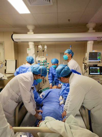 抢救重症患者不仅是技术活,也是体力活,器官功能支持治疗、气管插管、纤维支气管镜检查、呼吸机治疗、呼吸力学监测、血液净化、俯卧位通气、床旁超声检查、深静脉穿刺置管、吸痰、输液、输血......面对高强度的工作,ICU医护们相互扶持、轮番上阵、昼夜坚守。