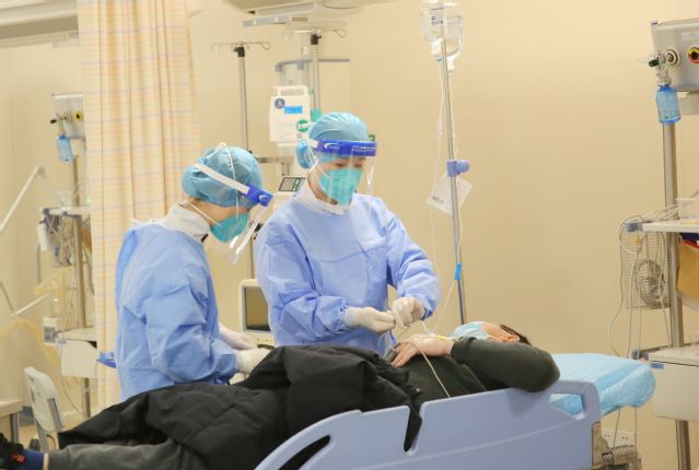 重症医学科护士长王雅萍说:“ICU的情况是比较特殊的,瞬息万变的病情全靠医护人员留心观察,不能有丝毫懈怠。没有家属,病人的一切吃、喝、大小便处理、翻身、拍背全都是由护理人员来完成的。我们科室的医生和护士基本全部感染上阳性了。很多员工在家休息了一两天就来上班了,还有高强度的夜班,大家都在坚持,很多人现在还没有完全恢复。我们也希望每个病人经过治疗和护理之后能够病情好转,转出ICU。”