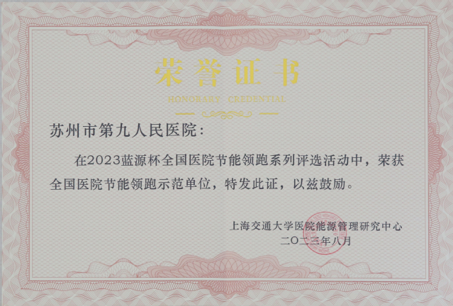 获评“第二届蓝源杯全国医院节能领跑示范单位”称号。