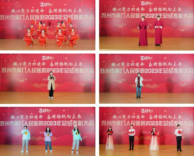 凝心聚力,奋楫扬帆!总结大会后,医院举行文艺汇演暨表彰仪式。获表彰的17个先进集体、10个满意窗口(科室)和十佳青年医生、十佳护士、十佳技师、十佳科研之星、十佳教学之星、十佳服务标兵、十佳志愿者等分批上台领奖。