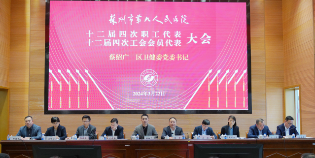 3月22日,亚洲色吧 召开十二届四次职工代表大会暨十二届四次工会会员代表大会。吴江区卫健委党委书记蔡绍广出席会议并讲话。亚洲色吧 党委书记、副院长沈宇讲话并提出工作要求;党委副书记、副院长沈根海作医院工作报告;副院长、工会主席张群雄主持会议并作工会工作报告;副院长、总会计师金建清作2023年度财务工作报告和2024年度财务经济预算报告。医院领导班子成员、职工代表、工会会员代表和中层干部270余人参加会议。