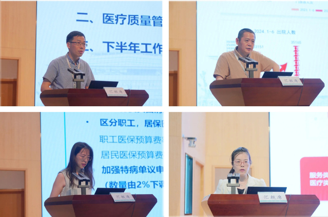 推进会上,沈宇就如何决胜2024年全年目标任务提出具体要求。他要求,要不断强化党建引领,进一步铸牢信念之“魂”;要不断强化资源共享,进一步拓宽发展之“路”;要不断强化内涵建设,进一步夯实质量之“基”;要不断强化精细管理,进一步激发运营之“效”;要不断强化惠民举措,进一步厚实服务之“本”。同时,他要求全院干部职工以“时时放心不下”的责任感和“事事心中有底”的行动力,坚持稳中求进、以进促稳、先立后破的工作总基调,聚焦发展、聚焦服务、聚焦人文、聚焦安全,明确党建引领、学科带动、人才强基、管理增效的“四轮驱动”助推医院驶入一体化发展的快车道,为实现医院战略升级和高质量发展作出更大的贡献。沈根海作上半年工作报告。他指出,医院上半年以习近平新时代中国特色社会主义思想为指导,坚持以人民健康为中心,以一体化和高质量发展为主线,以等级医院创建和国考指标提升为抓手,整体运营稳中有进,基本完成年初制定的各项目标任务。医院综合指数、发展指数、科教指数、效能指数、文化指数再攀新高。在党建工作、学科培育、医改深化、科研赋能、教学提升,人才引育、流程改善和管理效能等方面均取得了一定成效。下半年,医院将对指标,补短板,全力构筑发展新高地;聚合力,抓创建,全力展现管理新优势;优服务,惠民生,全力升级就医新体验;谋战略,引资源,全力打造合作新模式;跟党走,赢未来,全力迸发引领新动能,全力以赴抓落实,紧扣一体化和高质量,扎实推进各项工作快速开展,共谋医院高质量发展新篇章。