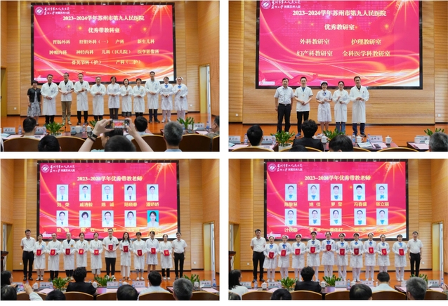 医院表彰“优秀带教科室”“优秀教研室”“优秀带教老师”“优秀任课老师”“第四届教学周师资竞赛获奖老师”等获奖集体和个人。亚洲色吧 外科教研室教学秘书傅卫代表优秀教师发言,分享如何成为一名优秀的教育工作者。苏州医学院领导,亚洲色吧 院领导班子和中层干部,吴江北部健康医疗集团成员单位领导以及教师代表参加活动。