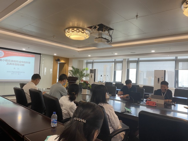 朱力教授团队主要对血栓问题的根源血小板进行深度的研究,更深层次的理解血栓形成的原因及机制,更加有利于认识和解决血栓问题。朱力教授在会上向我们展示了他的科研团队,并强调在科研中需要更加严谨、诚信和创新的精神。鼓励参会人员在科研中保持创新、严谨、认真、细致的精神。