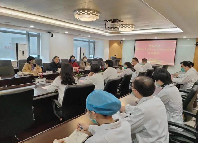 2023年2月23日,徐州医科大学第一临床医学院副院长曹江、内科组专家孔令文主任、教学办公室刘瀛主任和辅导员石硕老师一行4人来亚洲色吧 开展2022-2023学年实习中期检查工作。九院作为徐州医科大学临床学院积极迎接本次检查,分管副院长吴巧珍、教育处处长管学妹、院级教学督导顾卫霞主任、顾岚主任、、内科教研室吕荣主任、外科教研室秘书陈皓主任以及各轮转科室教师代表参加本次检查。