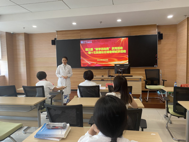 8月25日下午,教育处开展了“本科教学第十五批任课老师试讲活动”。为严把新教师的教学门槛,提高新教师的教学能力和教学水平,促进新进教师快速成长,迅速进入工作状态,此次要求4位新教师在20分钟之内节选本学科教学章节,简明扼要讲述疾病病因、诊断、临床表现等进行讲解。评委们对每位选手的讲课都认真聆听、记录优缺点并打分,试讲结束后对每位选手试讲优缺点进行了分析,并对试讲平均得分低于80分的任课老师予以取消本学期理论上课资格。经过严格筛选,本次试讲共2位老师通过试讲。
