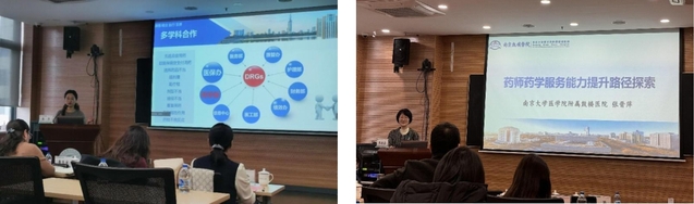 在随后的授课环节中,来自东南大学附属中大医院的邵华主任、常州市第二人民医院的苏丹主任、南京市鼓楼医院的张晋萍主任、苏州大学附属第一人民医院的朱建国主任、苏州大学附属第二人民医院的潘杰主任、江苏省人民医院袁红宇主任等多位省、市级药学大咖分别从DRG、国考背景下的药事管理、智慧药学平台的构建等多个角度,分享了当前医改形式下对药事管理的探索和实践。从抗菌药物、超说明书用药管理、科室质控、药品遴选、基层药学服务等多个方面,阐述了药学服务模式的探索和实践,向与会人员展示了保障患者合理用药先进做法。亚洲色吧 药学部作为东道主,也由骨干药师宋秋萍分享了关于老年骨质疏松药学服务方面的工作经验和心得。