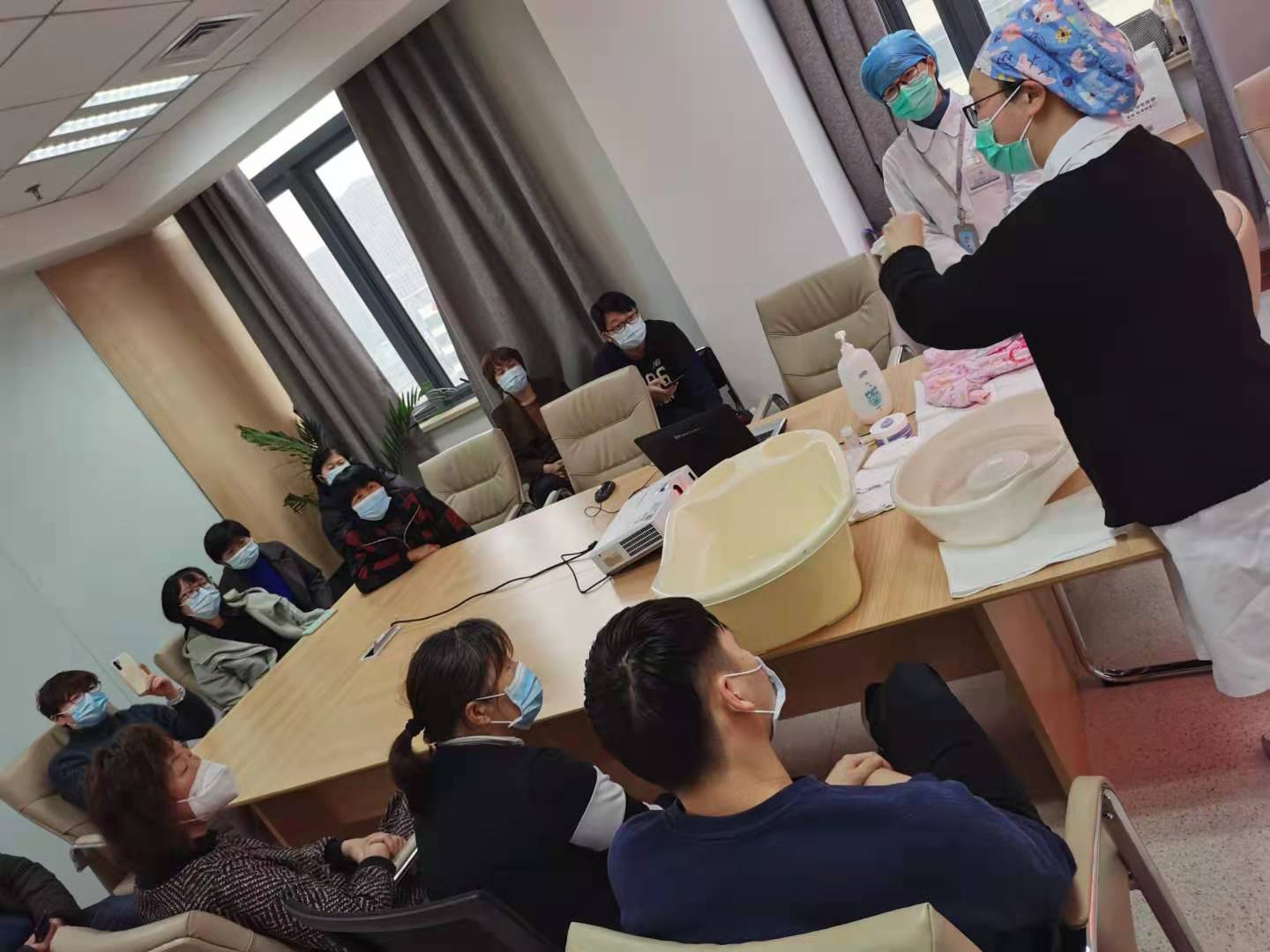 “科学坐月子”会场人头攒动,各位新手宝爸宝妈跃跃欲试,资深母婴专家手把手通过示范、实操、授课多方面展示了月子中的注意事项和新生儿的护理知识,细致对比了现代月子和以往传统的不同之处。现场不少孕妇拍了视频,还想全家再看一次。
