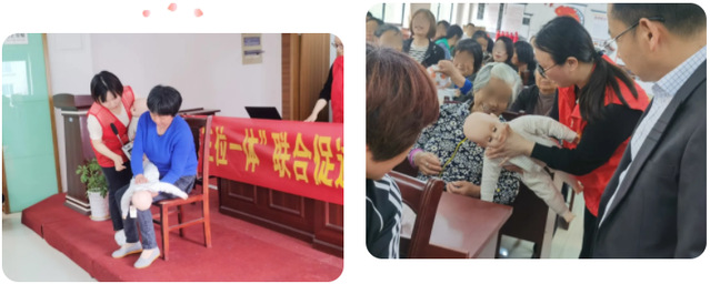 通过解答生活中经常遇到的一些常见问题,志愿者们与来到活动现场的居民们进行了交流。通俗易懂的语言,让大家瞬间拉近了距离。志愿者们向大家详细列出容易引起窒息的食物,并现场演示了婴幼儿和成人的海姆立克急救法。