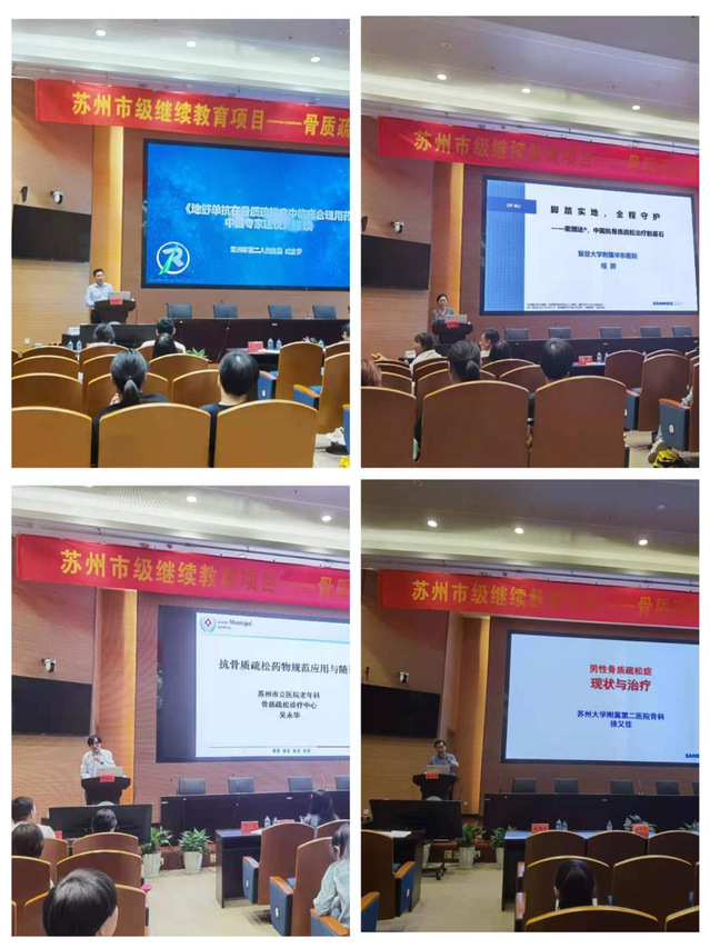 首先由亚洲色吧 副院长郎建华作简要的开幕致辞,随后分别由中华医学会骨松与骨矿盐疾病分会科普与继教学组副组长吴永华教授、中华医学会骨质疏松和骨矿盐疾病分会副主委徐又佳教授、江苏省医学会骨质疏松与骨矿盐疾病分会现任主任委员成金罗教授、中华医学会骨质疏松和骨矿盐疾病委员会第三、四、五届委员会副主任委员林华教授、中华医学会骨质疏松和骨矿盐疾病分会委员程群教授、江苏省中西医结合学会风湿病专业委员会副主任委员武剑副教授,以及本院老年医学科、全科医学科主任、大内科主任吕荣主任、影像科主任计一丁主任、中医康复科主任杜欢主任、药剂科副主任沈明丰主任进行授课,从骨质疏松的发病、影响学、相关诊疗指南及药物治疗进展等方面深入剖析,分享专家们多年临床应用的宝贵经验,使从事相关工作的医学同道受益匪浅。
