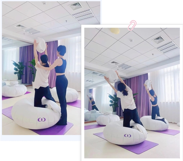 WAFF训练的名字源自“练习平衡、活力和功能”的缩写,这个名字同时也体现了它的核心理念。WAFF训练的核心工具是一种叫做“WAFF ”的特殊气垫。这个气垫看起来有点像一个瑜伽球,但它有着不同寻常的特点。WAFF 充满了空气,可以在多个方向上移动和变形,提供了一种独特的平衡和稳定性挑战,分为迷你WAFF、中号WAFF、大号WAFF,每种尺寸均有独特的功能,可用于主动锻炼,也可用于放松。