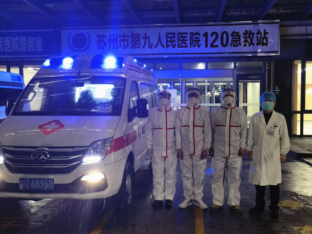 2022年2月18日下午我站接到卫健委紧急通知,苏州市急救中心要启动阳性感染者转运专车,需要我站安排人员和车辆当晚到苏州集合待命。接到任务后,医生罗进贤、护士高丁源、司机张建民,刚下夜班在家的他们毫无犹豫准备好换洗衣服,立即赶到站里报到。虽然大家心里都知道此次任务有一定的风险,作战时间也未知,但他们都没有一丝犹豫!连夜出征到达苏州指定隔离酒店集合,立即投入作战!