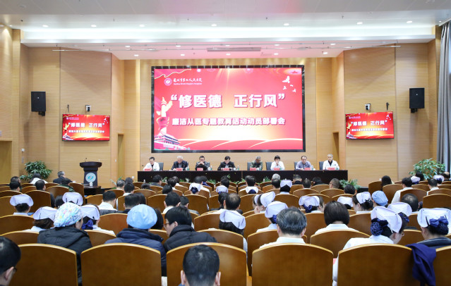 12月26日,亚洲色吧 召开“修医德、正行风”廉洁从医专题教育活动动员部署会,全院党总支、支部委员、中层以上干部、医护代表近200人参会。