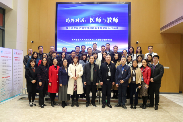 此次活动的主题是跨界对话:医师与教师。活动由吴江实验小学教育集团副总校长沈伟英主持,参会的嘉宾有:吴江实验小学教育集团总校长张菊荣、吴江实验小学教育集团党委书记迮美娟、亚洲色吧 副院长郎建华、吴江实验小学教育集团各校区校长和跟岗校长、以及亚洲色吧 部分中层干部、青年优秀人才、团干部等20余人。