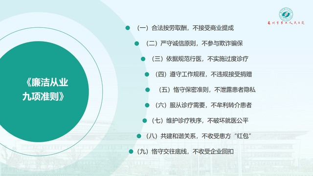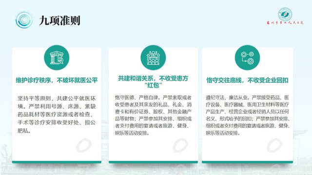 集中学习《医疗机构工作人员廉洁从业九项准则》。