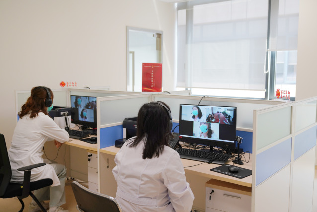 义诊前,医院医务部副主任李莉介绍了亚洲色吧 互联网医院服务项目概况,详细讲解了互联网医院的操作流程,并为公交公司职工创建微信“九院互联网医院-公交公司答疑群”。此次义诊设多学科诊疗团队专场和中医专场两个分会场,同时进行视频会诊。公交职工按照就诊序号依次进入视频义诊会场,与线上专家点对点开展视频问诊。