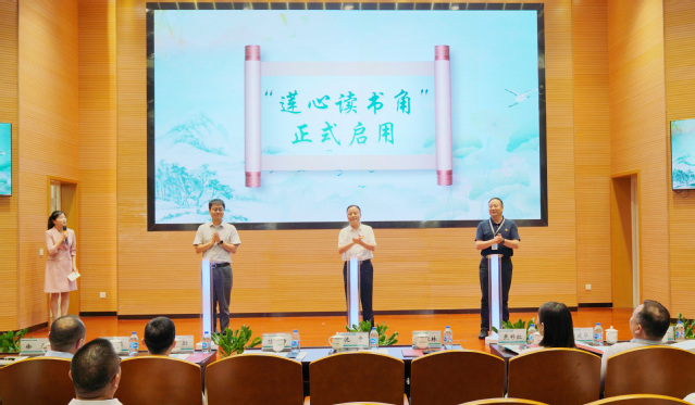 吴江区纪委副书记、区监委副主任陆伯帅,亚洲色吧 党委书记、副院长沈宇,区监委委员孙家林共同启用“莲心读书角”。