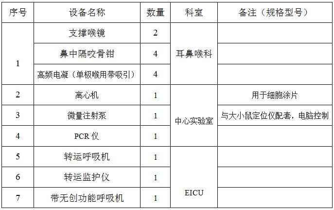 EICU转运呼吸机等设备的询价公告