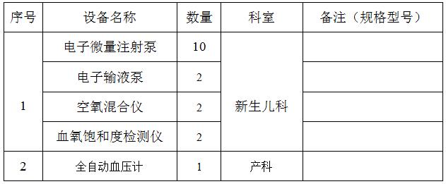 新生儿科等设备的询价公告