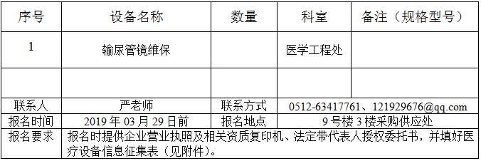 输尿管镜维保项目的采购报名通知