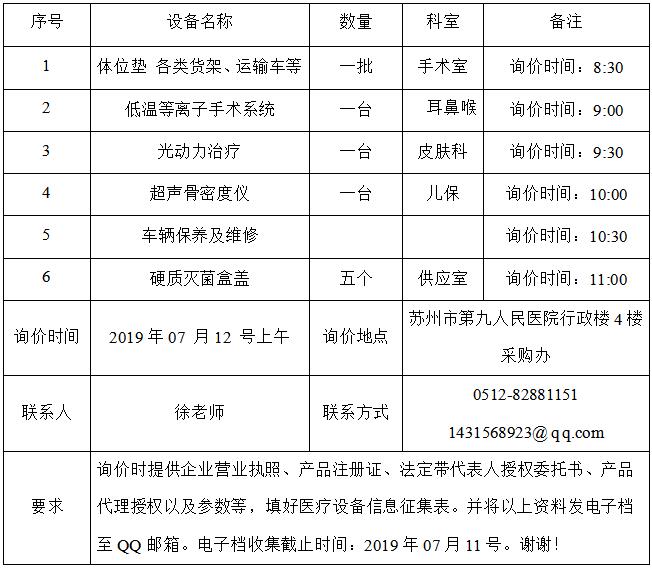 体位垫等项目的询价公告