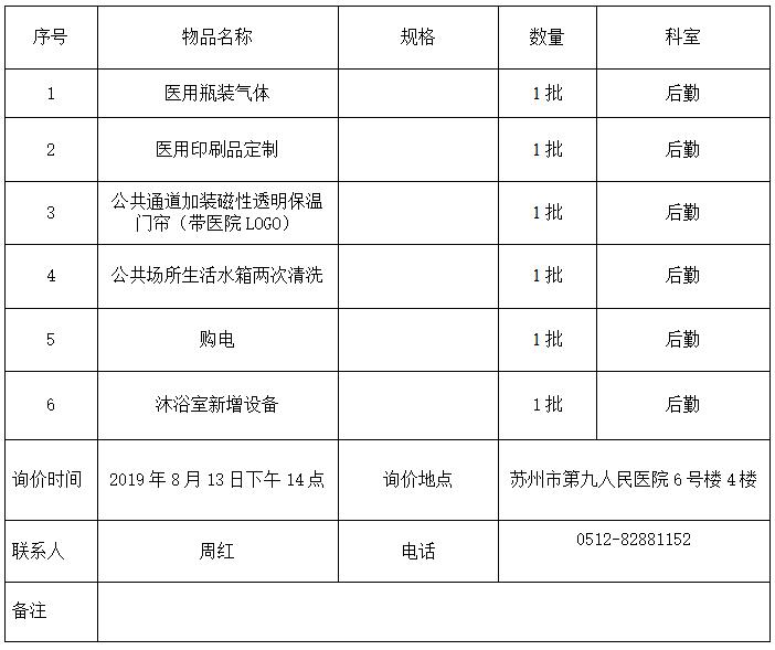 医用瓶装气体、印刷品等项目的询价公告