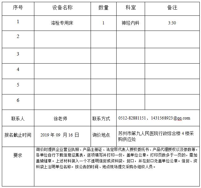 溶栓专用床 采购报名询价通知