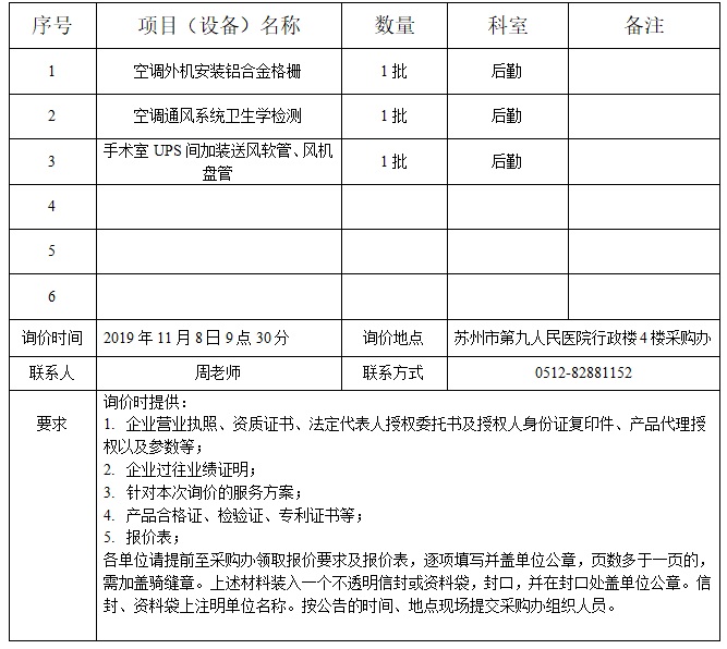 空调外机铝合金格栅等项目的询价公告