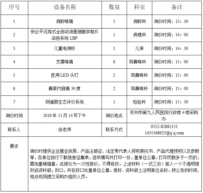 麻醉喉镜等 项目的询价公告