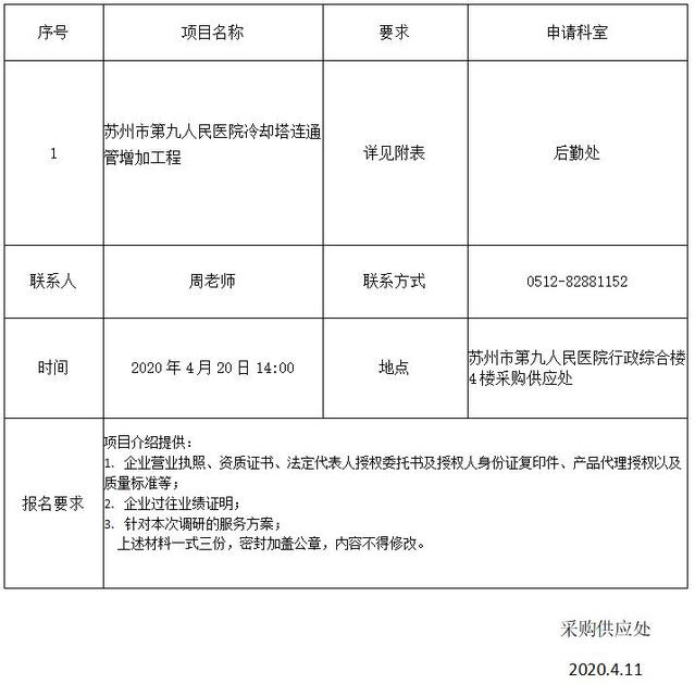 冷却塔连通管增加工程项目调研通知