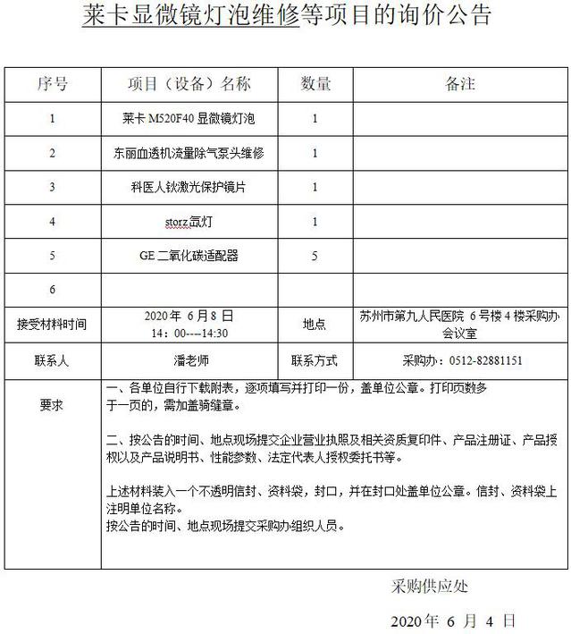 莱卡显微镜灯泡维修等项目的询价公告