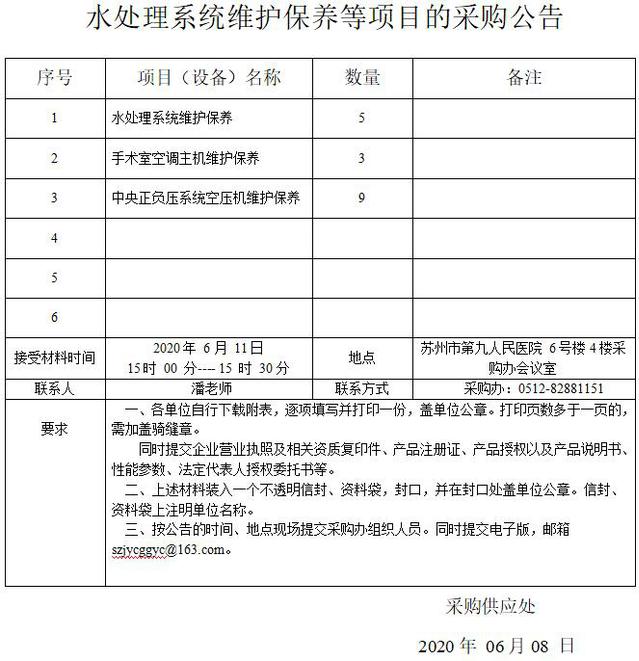 水处理系统维护保养等项目的采购公告
