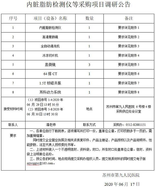 内脏脂肪检测仪等采购项目调研公告