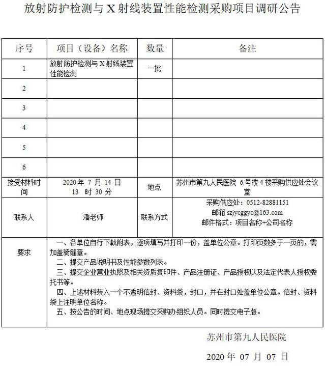 放射防护检测与X射线装置性能检测采购项目调研公告