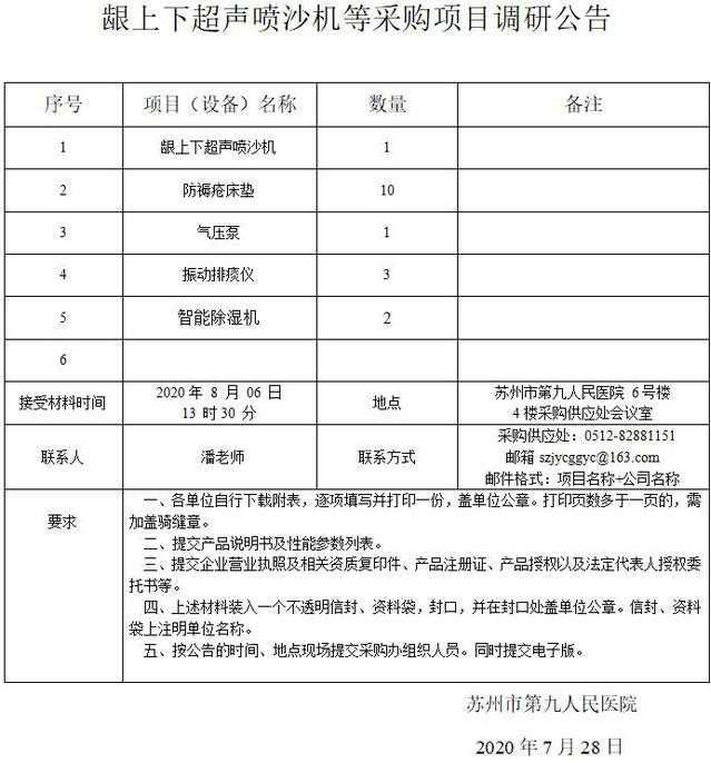 龈上下超声喷沙机等采购项目调研公告