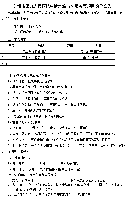 亚洲色吧 生活水箱清洗服务等项目询价公告