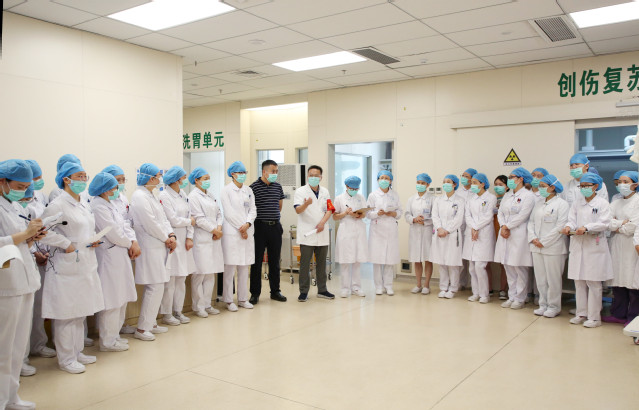 护理部主任肖佩华布置具体执行方案,迅速进行人员、场地、抢救物品的准备。