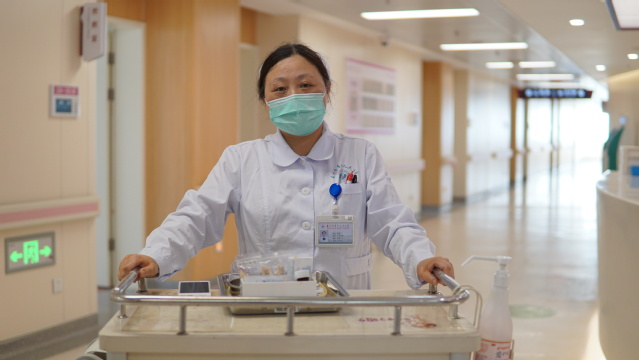 当然,护理工作也面临挫折。患者遭受了病痛的折磨,心情一般都十分低落,甚至整个病区的气氛都是凝滞的。这个时候,费维总是非常耐心地护理病人,缓解病人的焦虑,同时她也会考虑同事们的情绪,是病区里暖心的前辈。“护士的一句话、一个动作,可能就会让患者的心态发生一些变化,护士要做的就是耐心细致地工作。”费维说,在疾病治疗的过程中,要积极考虑往好的方向发展,让患者恢复健康。
